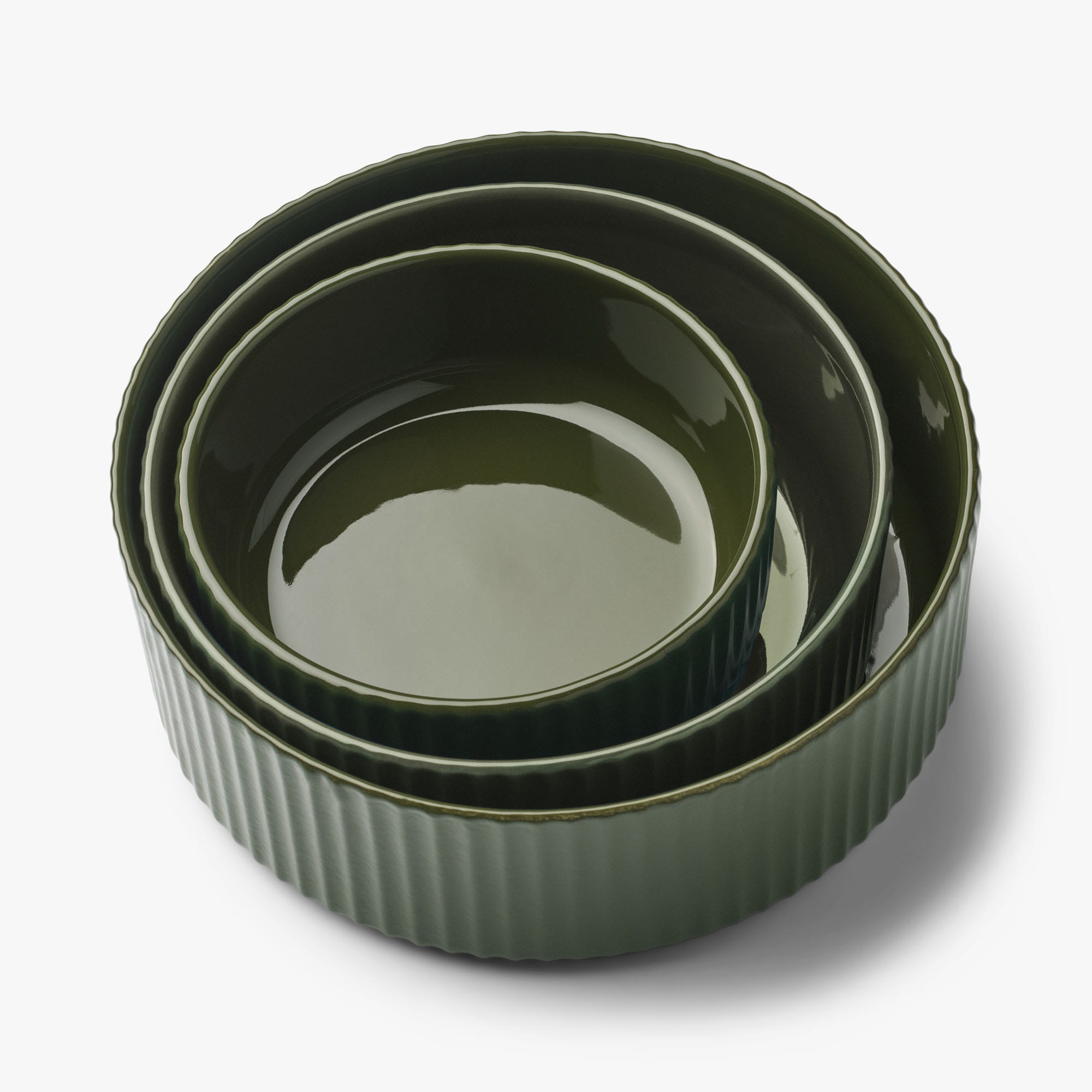 Miska Kronborg jest dostępna w trzech różnych rozmiarach i w kilku spokojnych kolorach wnętrza. Można ją dopasować do naszej podkładki Libra Placemat, aby uzyskać kompletny zestaw!