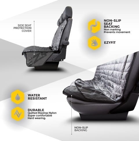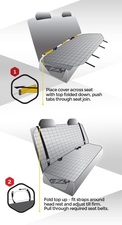 Pokrowiec EzyDog Drive to ochraniacz tylnych foteli dla każdego psa, zarówno tego dużego, jak i małego. Doskonały do ochrony skórzanych brzegów lub innych materiałów tylnej kanapy samochodowej.