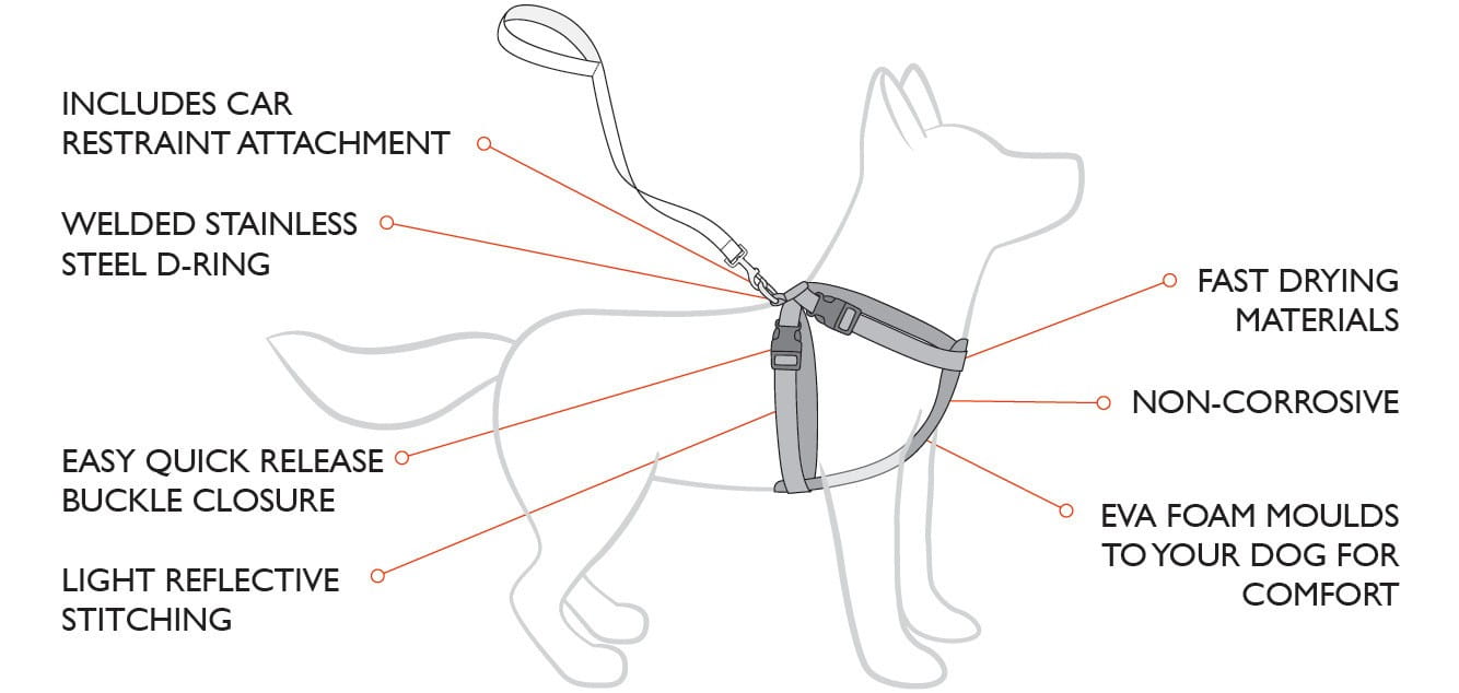 EzyDog Harness to niespotykany krój szelek które całkowicie zabezpieczają twojego psa podczas przewożenia w samochodzie a dołączony łącznik (Car Seat) upilnuje zwierzaka na swoim miejscu. Ergonomiczny pas zabezpieczający klatkę piersiową oraz szeroki paski o szerokiej regulacji obwodu czynią produkt jeszcze bardziej uniwersalnym. EzyDog harness sprawdzą się podczas spaceru, biegania,podróżowania. Dodatkowo zostały ozdobione refleksyjnym paskiem aby poprawić widoczność o zmroku.