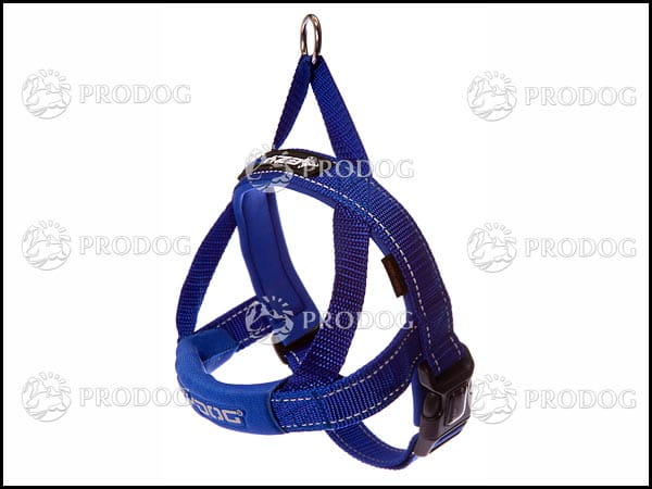 EzyDog Quick Fit Harness to nowy krój szelek dla Twojego psa. Głównym atutem jest prostota i szybkość zakładania; wystarczy przełożyć przez głowę psa, następnie pas za przednimi łapami, zapiąć jedna klamrę i gotowe. Całość wykonana z mocnych, znanych i sprawdzonych materiałów które nie nasiąkają wodą. Szelki zostały wyposażone w mały, umieszczony na bocznej części D-Ring pomocny przy przymocowaniu np: adresówki. Do przypięcia smyczy służy bardzo mocne metalowe kółko a odblaskowe elementy podniosą bezpieczeństwo po zmroku.