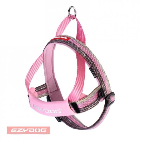 EzyDog Quick Fit Harness to nowy krój szelek dla Twojego psa. Głównym atutem jest prostota i szybkość zakładania; wystarczy przełożyć przez głowę psa, następnie pas za przednimi łapami, zapiąć jedna klamrę i gotowe. Całość wykonana z mocnych, znanych i sprawdzonych materiałów które nie nasiąkają wodą. Szelki zostały wyposażone w mały, umieszczony na bocznej części D-Ring pomocny przy przymocowaniu np: adresówki. Do przypięcia smyczy służy bardzo mocne metalowe kółko a odblaskowe elementy podniosą bezpieczeństwo po zmroku.