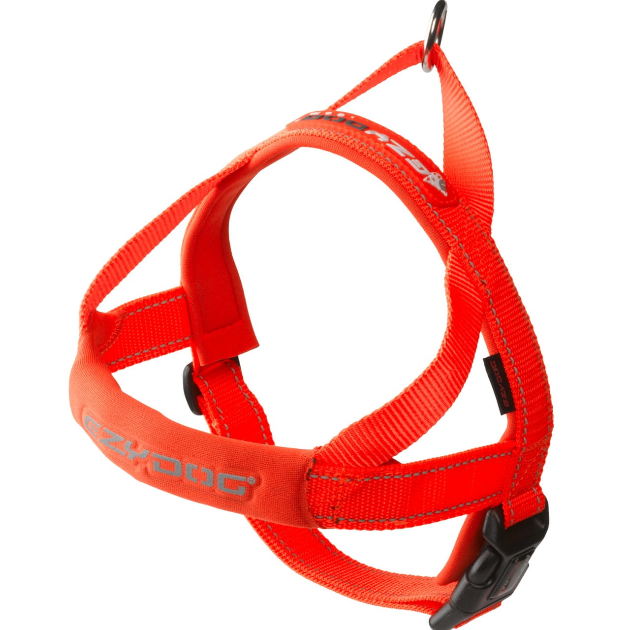EzyDog Quick Fit Harness to nowy krój szelek dla Twojego psa. Głównym atutem jest prostota i szybkość zakładania; wystarczy przełożyć przez głowę psa, następnie pas za przednimi łapami, zapiąć jedna klamrę i gotowe. Całość wykonana z mocnych, znanych i sprawdzonych materiałów które nie nasiąkają wodą. Szelki zostały wyposażone w mały, umieszczony na bocznej części D-Ring pomocny przy przymocowaniu np: adresówki. Do przypięcia smyczy służy bardzo mocne metalowe kółko a odblaskowe elementy podniosą bezpieczeństwo po zmroku.