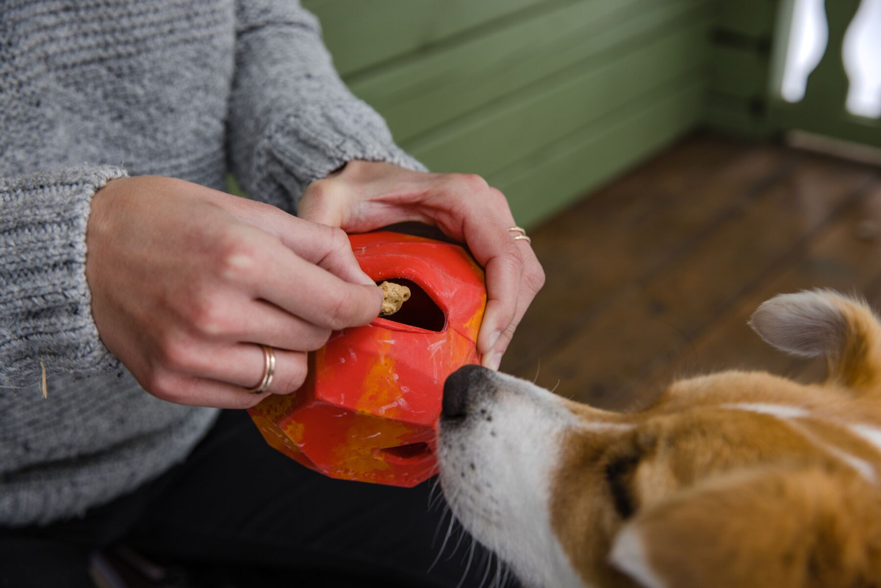 Ta zabawka wygląda jak kawałek Obsydianu z pobliskich zastygających strumieni lawy. Ta zabawka została zainspirowana naturalnym materiałem wulkanicznym, formowanym przez szybko schładzającą lawę z wulkanów Pacific Northwest. W przeciwieństwie do Obsidian, Gnawt-a-Rock jest wykonany z naturalnej gumy, a powierzchnia działa wręcz masującą na dziąsła psa. Jego nieregularny kształt sprawia że ten "kamień z gumy" odbija się w nieprzewidywanym kierunku. Wewnątrz jest miejsce na smakołyki dla psa które uatrakcyjnia dodatkowo zabawkę.