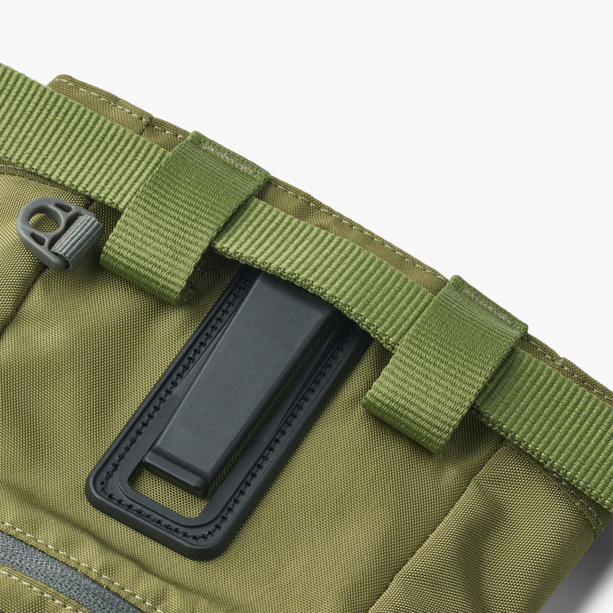 Noś go wygodnie na biodrze za pomocą regulowanego paska lub zintegrowanego klipsa do paska.