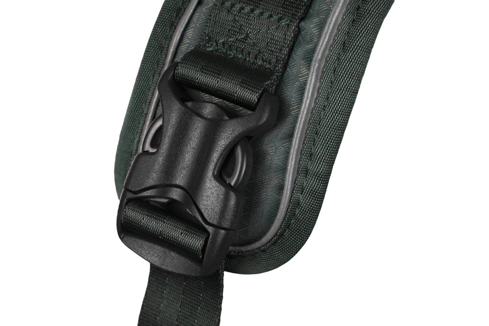 Uprząż Ramble jest wykonana z wytrzymałych materiałów, które nie nasiąkają wodą, posiada wzmocnienie Hypalon w odsłoniętych miejscach. Elementy odblaskowe 3 ™ zapewniają widoczność w ciemności. D-ring na grzbiecie wykonany jest z aluminium.