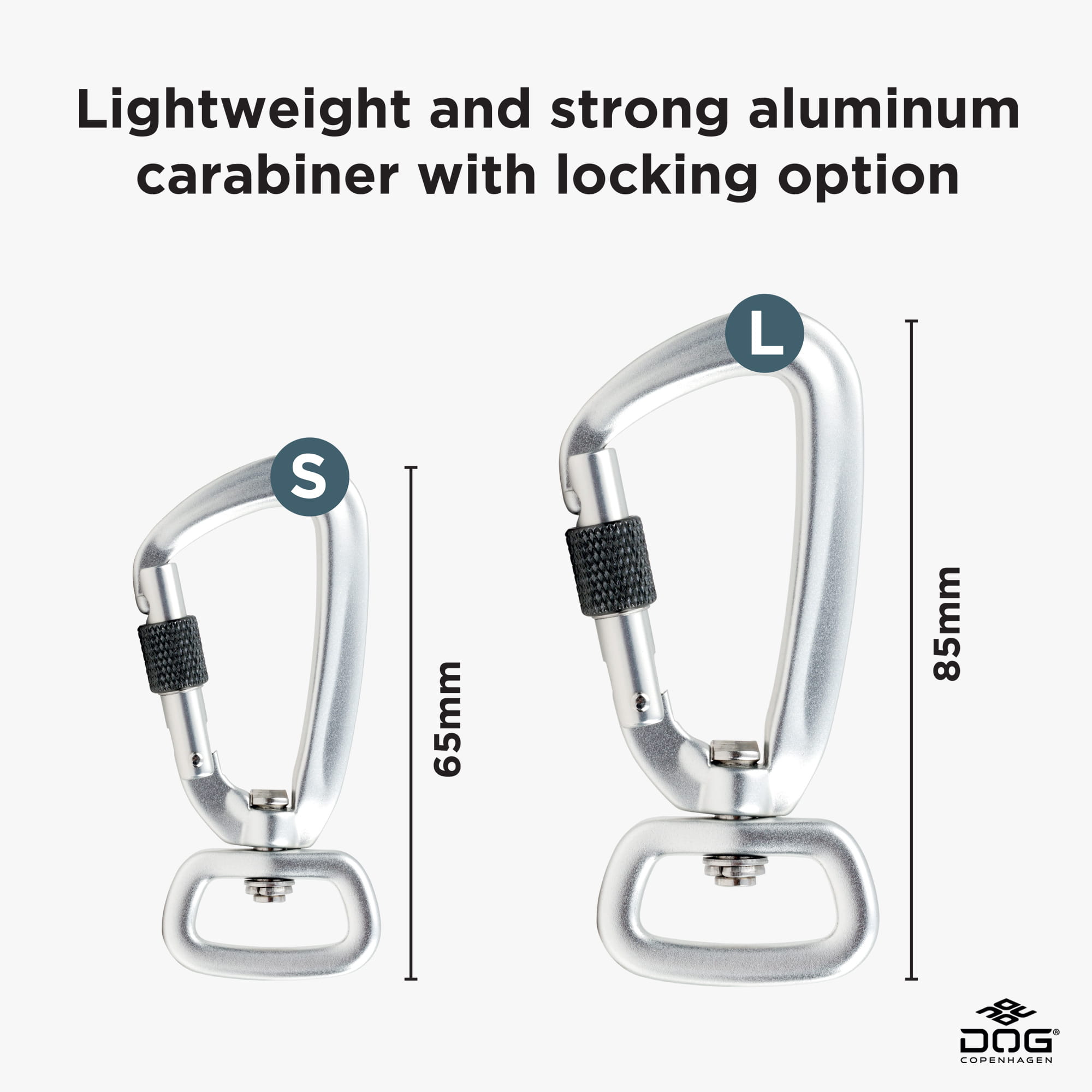 Wersja Small (mała) posiada mały karabińczyk / Wersja Large (duża) posiada duży karabińczyk