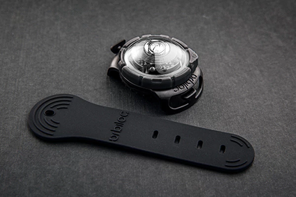 Światełko ORBILOC Dual montuje się na obroży lub pasku przeplatając ich koniec przez dwa otwory o wielkości 24x4mm lub zaciskając na pasku za pomocą gumowego paska montażowego (Quick Mount) który gwarantuje pewność, stabilność i regulację.